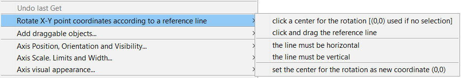 🠞 New submenu tailored to select a center and a reference line for the rotation of the point cloud plotted in the figure